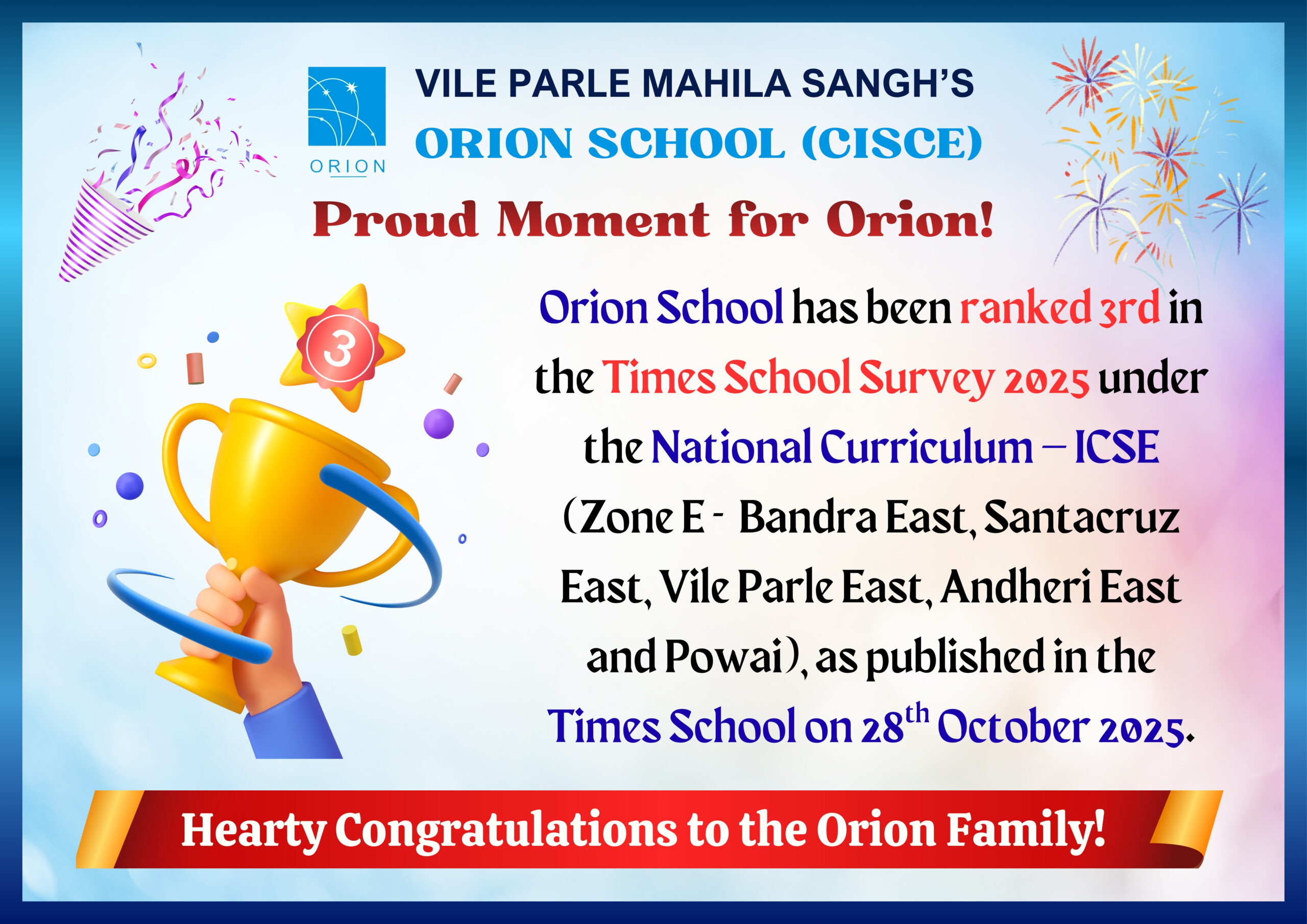Orion ICSE School, is the first ICSE School in Vile Parle – East. Orion was founded with a vision to facilitate an educational system that is at par with international educational standards and the need to equip our students, to face global competition.